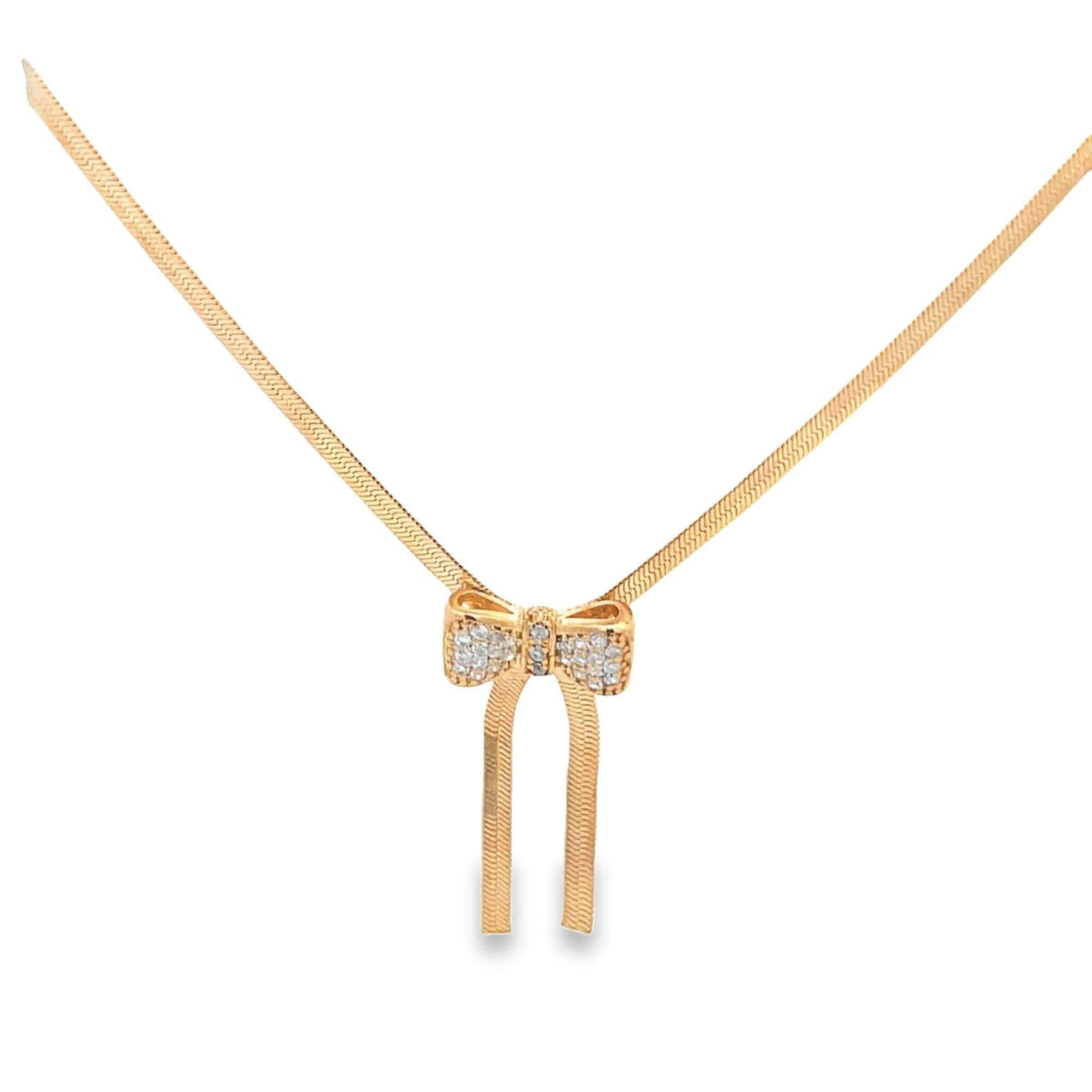 🌸 3mm herringbone chain with CZ bowtie charm