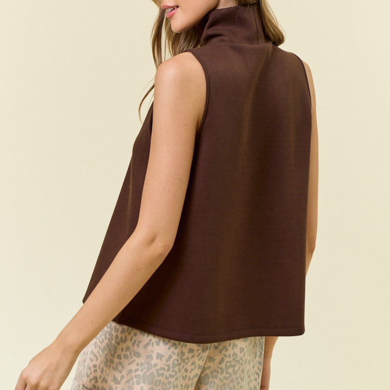🌸 Modern mock neck design with a relaxed, sleeveless fit