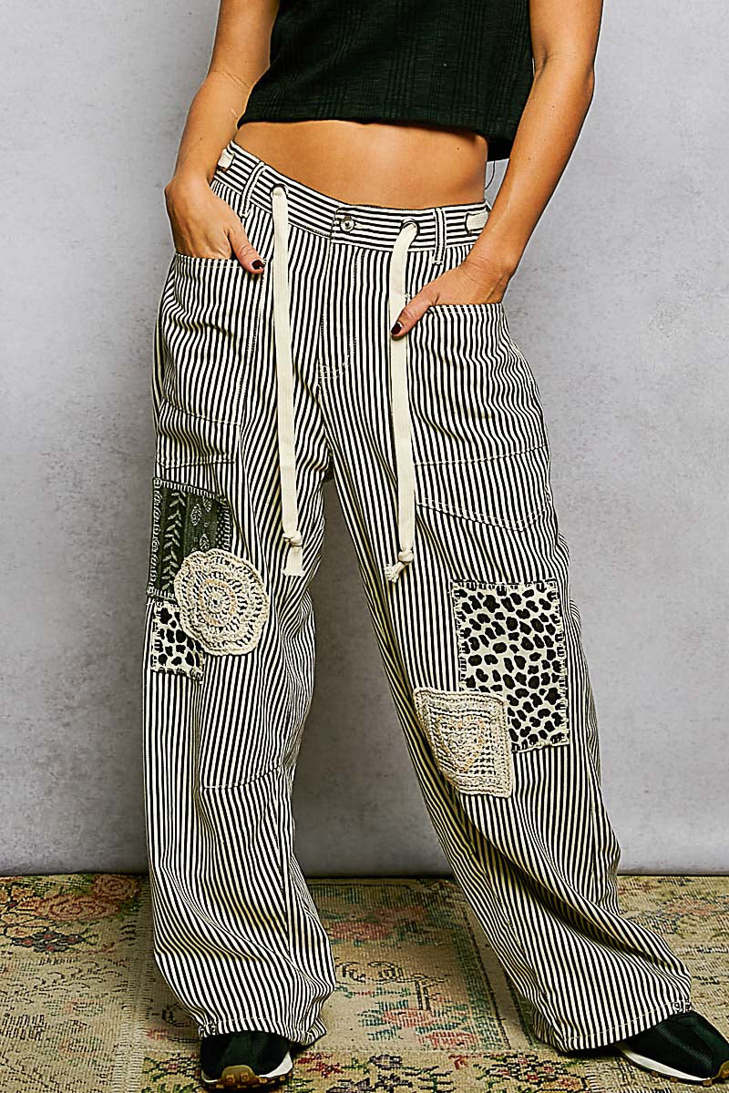 Patchwork Twill & Denim Straight-Leg Pants