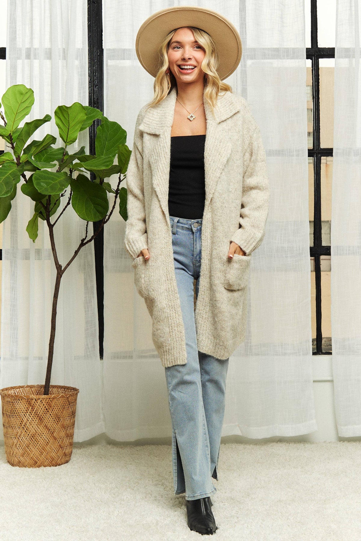 Long Sleeve Sweater Pocket Cardigan
