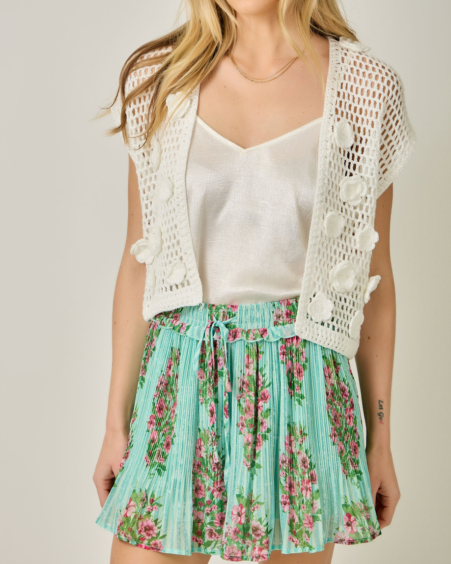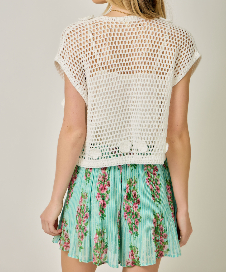 Add a little something special to your everyday layers with this 3D floral crochet cardigan. Designed with an open front, short cap sleeves, and a loose, easy fit, it’s the kind of piece you can toss on and instantly feel put together. The textured floral details give it that extra “wow” without trying too hard—perfect over tanks, tees, or dresses.
