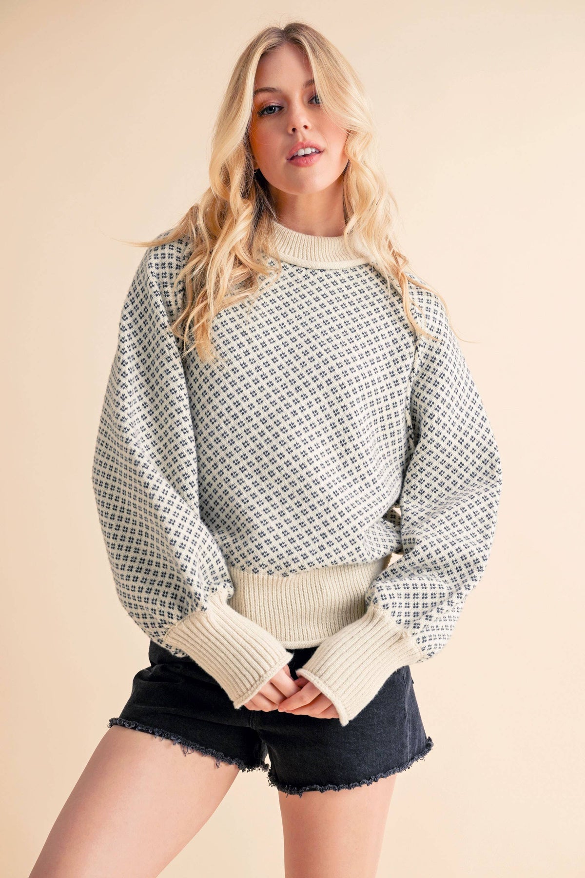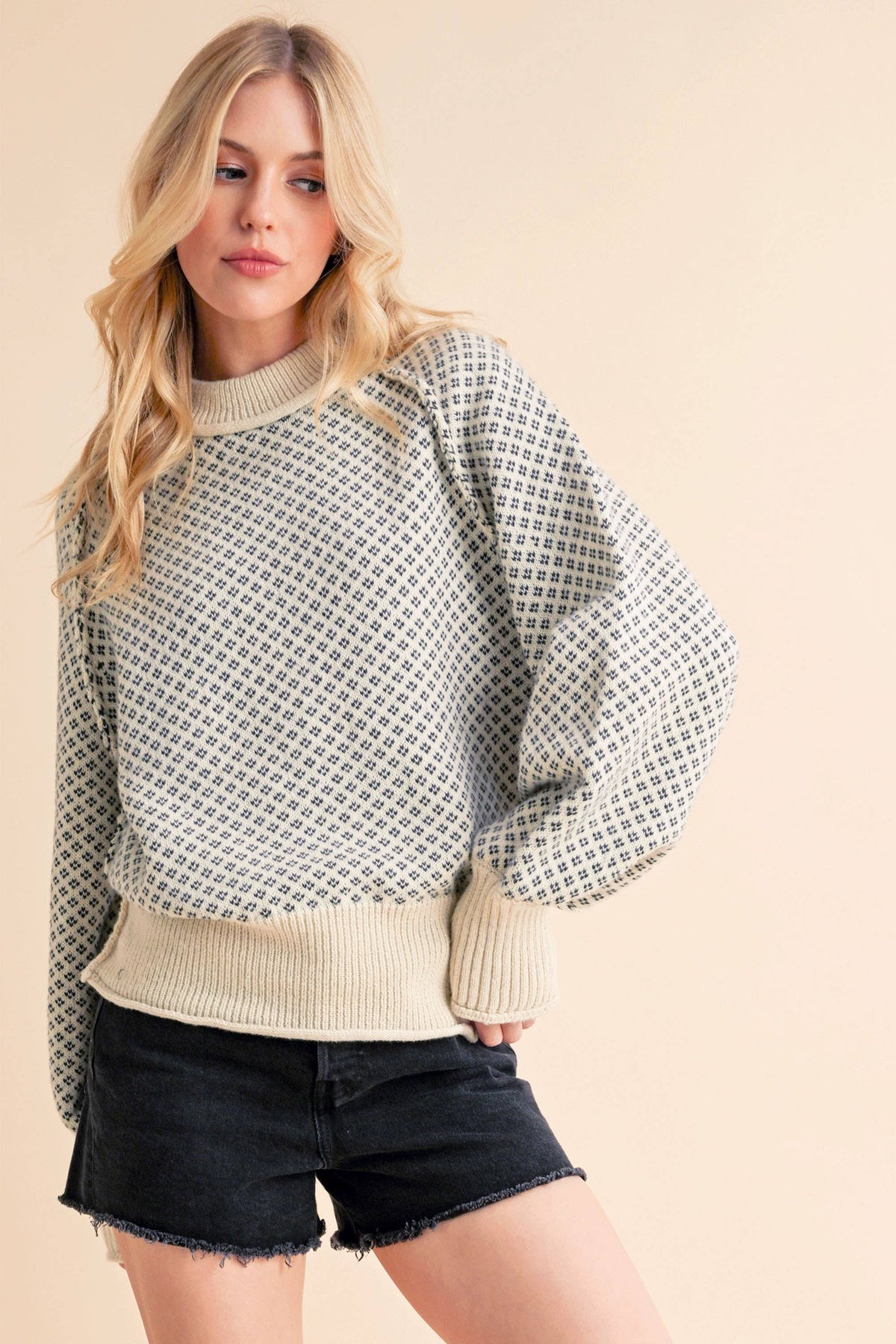 This soft pullover Echo sweater, crafted from a knit fabric, features an oversized fit with a chunky ribbed neckline and raglan sleeves. Its slouchy, oversized design includes ribbed trim, a chunky mock neckline, slouchy raglan sleeves with exaggerated cuffs, and a banded bottom hem. Elevate your knitwear collection with this versatile pullover, perfect for layering up or down.